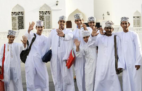 同样将传统服饰作为校服的还有阿曼。阿曼的男生校服一般为传统的白色长袍,女生戴着纱巾,从小学到大学都是一样的。