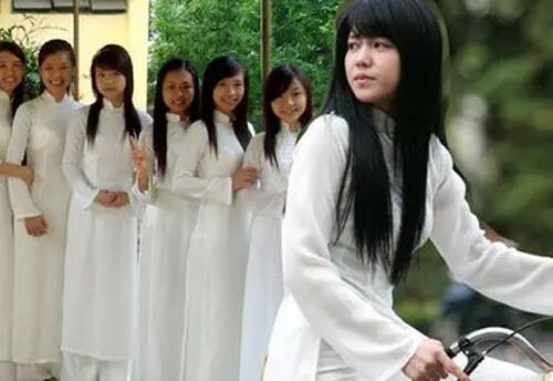 越南的校服是白色传统服装——奥黛。长发飘逸的女生穿上这一袭流畅的白衣,显得十分飘逸、脱俗。到越南旅游时常常会看到很多穿着这样校服的女生,成群结队,或潇洒的骑着单车,或提包路边步行,给人留下很纯美的记忆。而且将传统服饰作为校服,也能从小培养学生们对民族的认同感和自豪感。
